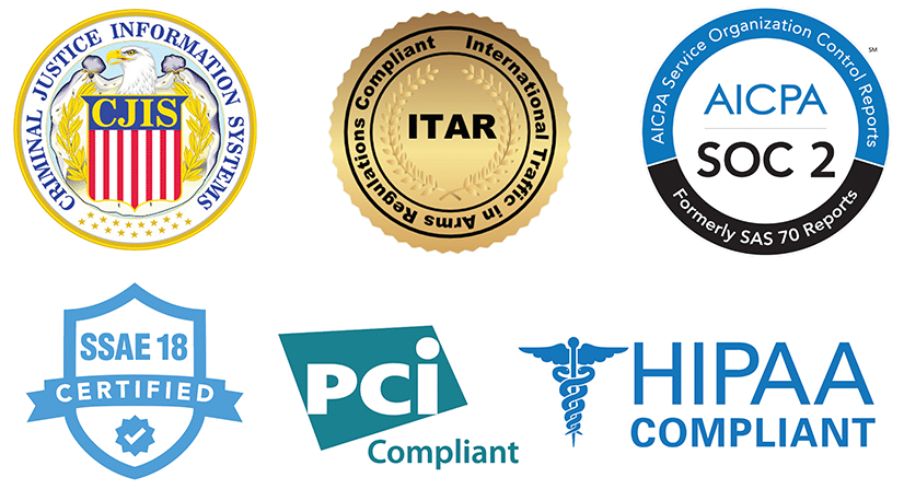 - Compliance: PCI DSS, CJIS, ITAR, HIPAA, SOC 2 Type 2 Certified
